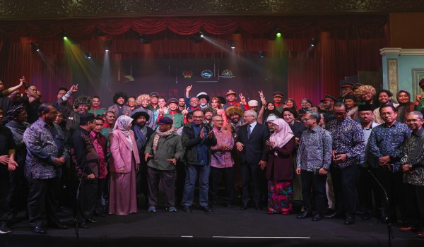 Perdana Menteri,Datuk Seri Anwar Ibrahim dan Pengerusi Lembaga Pengelola Dewan Bahasa dan Pustaka (DBP),Datuk Dr Anwar Ridhwan bergambar bersama para pelakon teater ‘Haji Murat’ pada pementasan perdananya di Balai Budaya Tun Syed Nasir Wisma Dewan Bahasa dan Pustaka / Foto Bernama