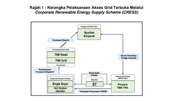 Kementerian Peralihan Tenaga dan Transformasi Air (PETRA) dalam kenyataan berkata,melalui konsep akses grid terbuka,pihak ketiga (TPA) boleh membekal (menjual) atau mendapat (membeli) bekalan elektrik melalui sistem rangkaian grid dengan caj akses sistem yang ditetapkan.