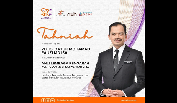 KUALA LUMPUR,14 Ogos- Ketua Setiausaha Kementerian Komunikasi,Datuk Mohamad Fauzi Md Isa dilantik sebagai Ahli Lembaga Pengarah baharu Kumpulan MyCreative Ventures,sebuah syarikat pelaburan milik kerajaan khusus untuk meningkatkan industri kreatif tempatan.