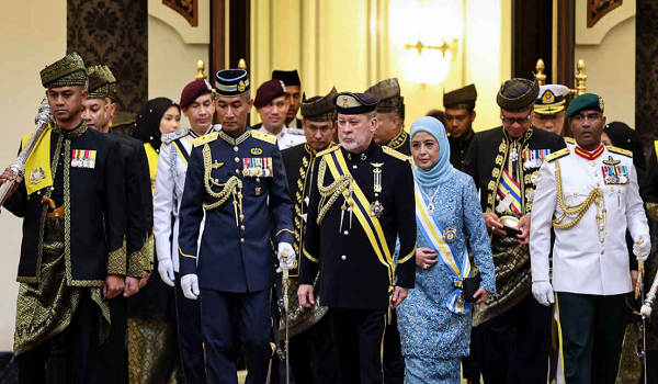 Perdana Menteri dan isteri kemudiannya mengiringi Seri Paduka Baginda berdua ke Peterana Diraja bagi menerima Hormat Diraja oleh Kawalan Kehormatan Utama dari Batalion Pertama Rejimen Askar Melayu Diraja (RAMD) di Dataran Istana Negara.