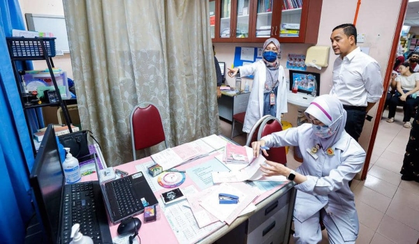 Menteri Besar Johor melawat klinik Gelang Patah semalam,mendapati ruang menunggu begitu sesak dan sempit/Foto Facebook Onn Hafiz