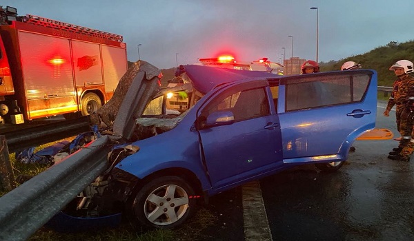 Sebaik tiba di lokasi kejadian,kereta dipandunya dipercayai hilang kawalan sebelum melanggar besi penghadang lebuh raya.