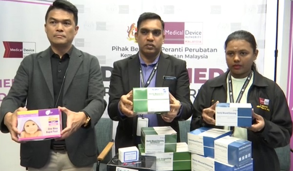 "Pelbagai jenis peranti perubatan yang dijual antaranya pembalut luka pelbagai saiz,kit ujian kesuburan,kit ujian kehamilan,kondom dan kain kasa yang dianggarkan jumlahnya daripada nilai RM45,000 dalam satu syarikat sahaja," katanya.