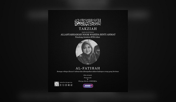 Penolong Jurutera RTM,Noor Wahida Ahmat meninggal dunia ketika bertugas