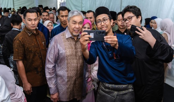 Timbalan Perdana Menteri,Datuk Seri Dr. Ahmad Zahid Hamidi berswafoto dengan para pelajar ketika menghadiri Majlis Amazing Syawal Universiti Poly-Tech Malaysia (UPTM) 2025 hari ini/BERNAMA