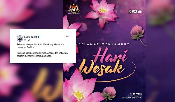 KUALA LUMPUR,12 Mei- Menteri Komunikasi Datuk Fahmi Fadzil mengucapkan Selamat Hari Wesakkepada semua penganut Buddha di negara ini.