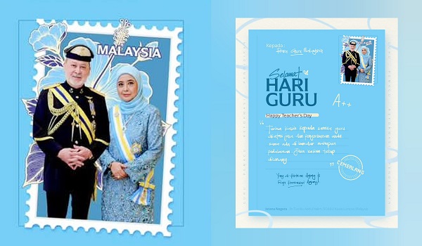 KUALA LUMPUR,16 Mei- Yang di-Pertuan Agong Sultan Ibrahim dan Raja Permaisuri Agong Raja Zarith Sofiah menzahirkan ucapan selamat Hari Guru kepada semua warga pendidik di negara ini.