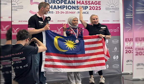 PARIS,26 Mei- Malaysia terus mencipta sejarah di pentas dunia apabila Pemaju Masyarakat Jahitan KEMAS Parlimen Kubang Pasu,Siti Hajar Mahmud,dinobatkan sebagai juara tunggal dalam kategori Best Wellness & Relaxation Massage (International Division) di Kejohanan Urutan Eropah 2025 yang berlangsung di Paris,Perancis.