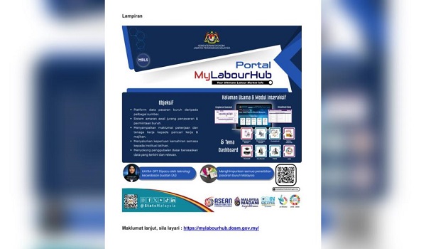PUTRAJAYA,27 Mei- Platform analitik digital bersepadu MyLabourHub yang dilancar Jabatan Perangkaan Malaysia (DOSM) bakal mengukuhkan kedudukan Malaysia selaku peneraju penilaian inventori data terbuka di dunia.