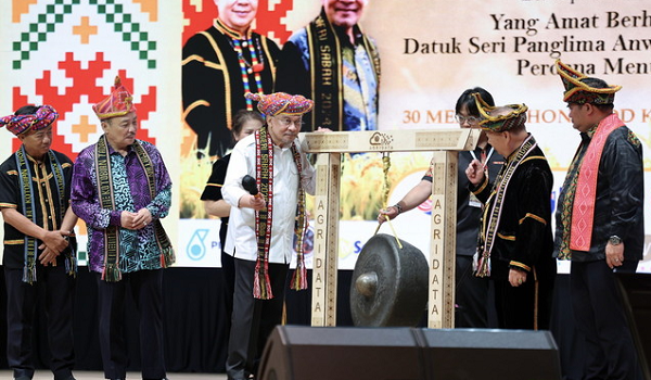 Perdana Menteri Datuk Seri Anwar Ibrahim memukul gong sebagai simbolik perasmian sambutan Pesta Kaamatan peringkat negeri Sabah di Dewan Hongkod Koisaan,Persatuan Kebudayaan Kadazandusun (KDCA),Penampang,Sabah hari ini / BERNAMA