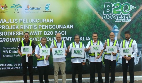 SEPANG,29 Mei – Malaysia terus memperkukuh komitmennya terhadap kelestarian industri sawit dengan melancarkan program perintis penggunaan biodiesel B20 di Lapangan Terbang Antarabangsa KL (KLIA).