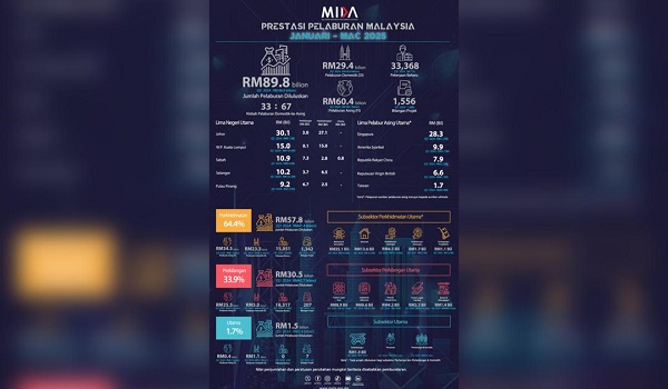 KUALA LUMPUR,11 Jun- Malaysia merekodkan RM89.8 bilion pelaburan diluluskan bagi suku pertama 2025,dengan peningkatan 3.7 peratus berbanding tempoh yang sama tahun lalu,di sebalik cabaran ekonomi global.