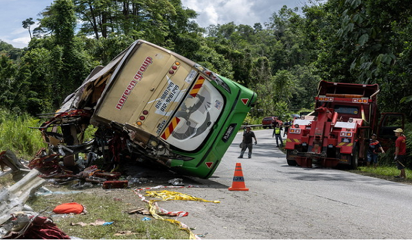 Kemalangan itu turut mengakibatkan 33 individu cedera,termasuk pemandu dan kelindan bas serta pemandu dan tiga penumpang Perodua Alza. -BERNAMA