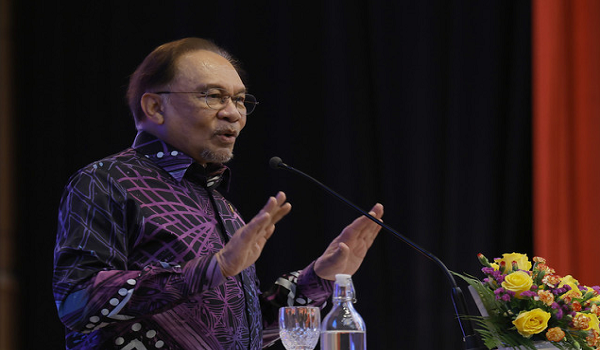 Perdana Menteri,Datuk Seri Anwar Ibrahim,berucap pada Majlis Perhimpunan Kementerian Kewangan bersama Perdana Menteri di Putrajaya/Foto BERNAMA