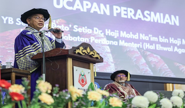 Menteri di Jabatan Perdana Menteri (Hal Ehwal Agama) Datuk Dr Mohd Na'im Mokhtar menyampaikan ucapan pada Majlis Konvokesyen Institut Kemahiran Baitulmal Majlis Agama Islam Wilayah Persekutuan (MAIWP) Ke-31 di Pusat Belia Antarabangsa. Foto BERNAMA